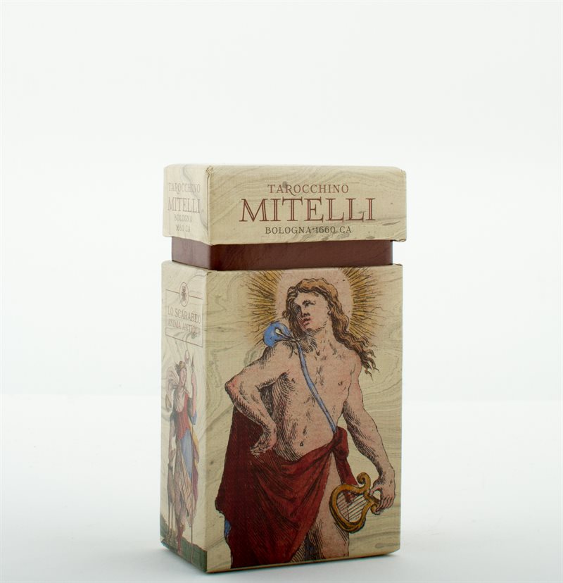 One of the most important decks in the history of tarot, the Mitelli deck is a "Tarocchino," a deck of 62 cards created for a variant of the game of tarot. Part of Lo Scarabeo's Anima Antiqua series (Ancient Soul), this deck has been loving recreated on high quality stock. This is a limited edition and numbered deck.